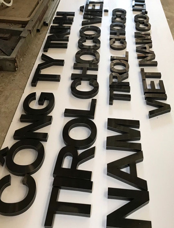 Bộ chữ inox đen công ty CHOCO có cấu tạo: